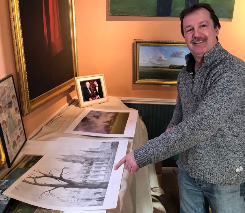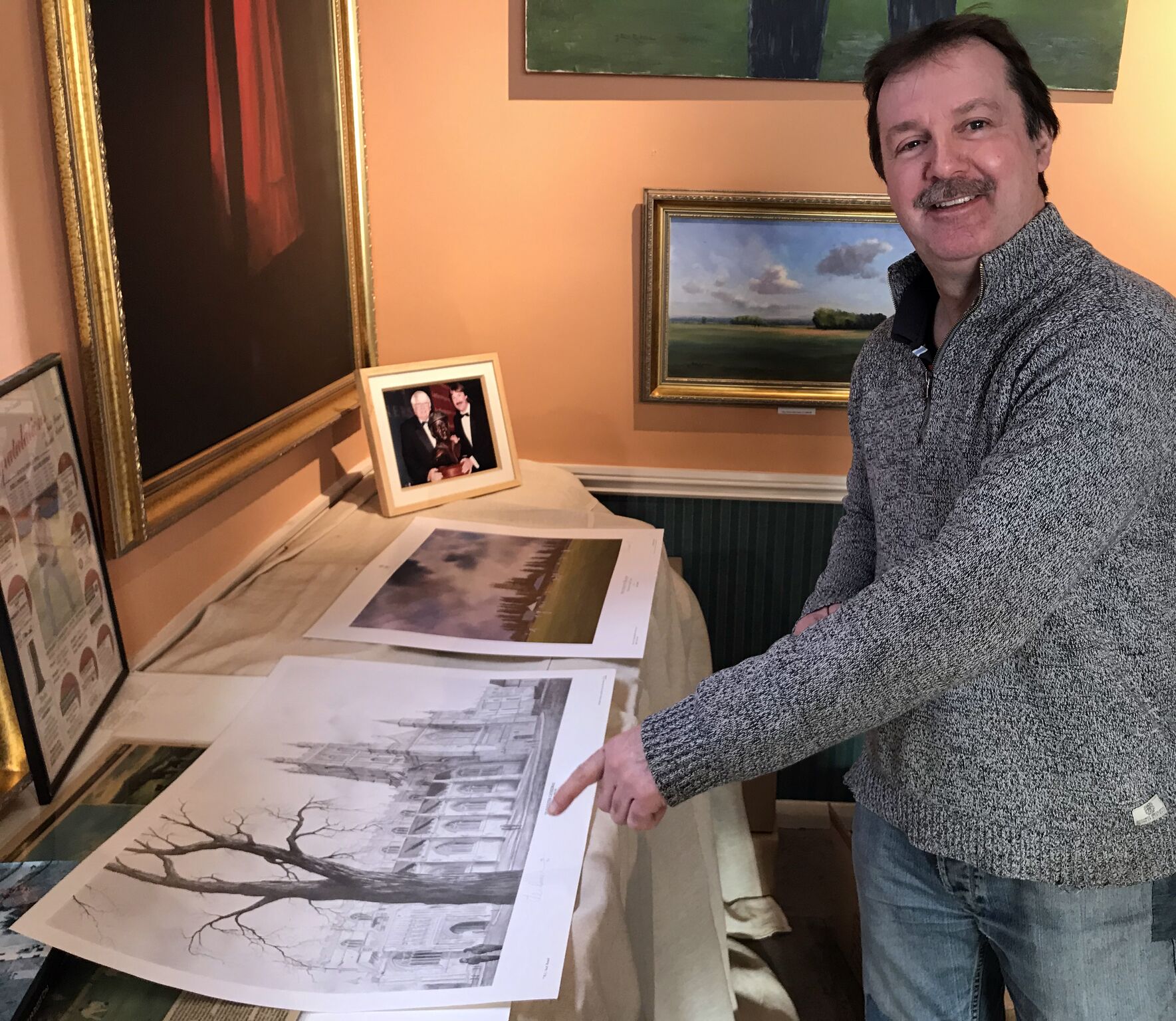 Jack Russell with drawing of Gloucester Catherdal_preview Published January 21, 2018 at 1769 × 1536 in Jack Russell returns to Gloucester for WSP Art in the City 2018